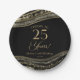 Elegant Black Gold Agate 25th Birthday Party Paper Plate