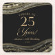 Elegant Black Gold Agate 25th Birthday Party Square Paper Coaster