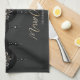 Elegant black and gold Christmas design with luxury Christmas baubles with ornate decoration, satin bows and golden chain and personalised text.