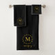 Elegant Black Gold Botanical Wreath Monogram Bath Towel Set