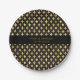 Elegant paper party plate feature gold metallic retro carnival style harlequin diamonds pattern on black a background. Personalise with names, dates or other special messages. Perfect for all sorts of special events and celebrations.