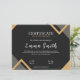 An elegant certificate of achievement featuring a modern black background with luxurious gold geometric accents. Perfect for employee recognition, academic awards, corporate appreciation, school achievements, or professional milestones. This stylish and timeless certificate design is ideal for offices, schools, businesses, and formal award ceremonies.