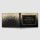 Elegant black and gold wedding guest book with gold confetti. Easily personalize this template online. Matching items available to complement this modern wedding guest book.