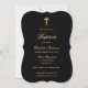 Elegant black and gold baptism invitations featuring a gold cross and an elegant script font.