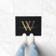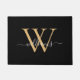 Elegant Black Gold Custom Monogram Script Name Doormat