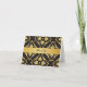An elegant wedding Thank You card in black and gold. A damask pattern of gold lily flowers on a black background with a horizontal gold ribbon. This exquisite card is the perfect finishing touch to your formal event, or any event which requires a thank you note.