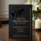 The deep black background enhances the luxurious gold foil details while the floral composition adds a quiet sense of dignity and remembrance. This invitation offers a timeless and tasteful way to share the details of a memorial gathering while honoring the memory of a loved one.