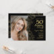 Elegant Black Gold Floral Photo 50th Birthday Invitation