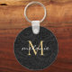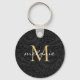 Elegant Black Gold Floral Script Monogram Key Ring