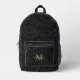 Elegant Black Gold Floral Script Monogram Printed Backpack
