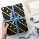 Elegant Black & Gold Foil Christmas Stripes & Dots Wrapping Paper