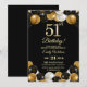 Elegant Black Gold Glitter 51st Birthday Party Invitation