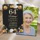 An elegant modern design featuring gold 64th number, balloons with gold and black glitter and a special photo of the birthday person on the back of the invitation. Customize the details for a unique and chic Birthday Celebration.