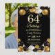 Elegant Black Gold Glitter 64th Birthday Photo Invitation