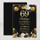 Elegant Black Gold Glitter 69th Birthday Party Invitation
