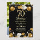 Elegant Black Gold Glitter 70th Birthday Photo Invitation