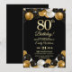 Elegant Black Gold Glitter 80th Birthday Invitation