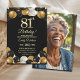 Elegant Black Gold Glitter 81st Birthday Photo Invitation