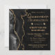 Elegant Black Gold Glitter Agate Quinceanera Invitation