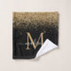 Elegant Black Gold Glitter Border Monogram Script Bath Towel Set