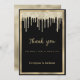 This luxury modern minimalist black and gold glitter drips border Wedding Thank You Invitation is inspired by the simple and elegant was but with subtle hints of modern influence. It features a glam gold glitter drips border on a simple black background. This classic and luxury design will be a big hit with all your guests. All designs are printed.