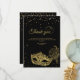 Elegant Black Gold Glitter Masquerade Thank You Card