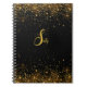Elegant Black & Gold Glitter Monogram Script Name Notebook
