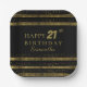 Black and gold birthday party plates. Featuring stunning gold glitter stripes and gold birthday text all on a black background. Easy to customise and change to any age desired.