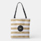 Elegant Black Gold Glitter Striped Monogram Tote Bag