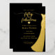Elegant Gold Gown 50 and fabulous birthday Invitation with cute calligraphy