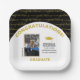 Elegant black and gold Graduation Photo square paper plates, designed for your celebrations of your graduate's success. There is a small graduation topper graphic in the same coordinating script colour in the background. Up the side of the CUSTOMIZABLE PHOTO there is a subtle Christian Bible reference for Ephesians 3:20 - 'God is able to do exceedingly, abundantly'. The background tiled pattern says CONGRATULATIONS in script typography. The rest of the text is CUSTOMIZABLE so you can easily personalise these graduation party plates for your specific needs. Matching items available. Choose from a wide selection of Graduate designs on cards, invitations, clothing, home decor and gifts, designed by Berean Designs.