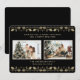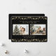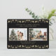 Elegant black and gold photo holiday card featuring two photos adorned with gold holly and berries. Easily personalise this photo holiday card with your favourite photos and the family name.