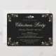 Elegant Black Gold Holly Christmas Holiday Party Invitation