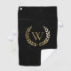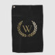 Elegant Black Gold Laurel Wreath Monogram Golf Towel