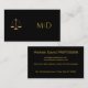 Make a lasting impression with this elegant black and gold business card featuring a golden scales of justice symbol — a timeless emblem of fairness and professionalism. The rich black background contrasts beautifully with the metallic gold details, creating a modern and sophisticated look. Personalize both sides with your name, title, and contact information. Perfect for lawyers, legal consultants, judges, and law students. Designed by Alma Wad. Comes in a pack of 100 high-quality cards.