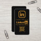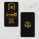Elevate your professional networking with this sleek black and gold LinkedIn business card. Designed for the modern professional, this card features a prominent LinkedIn logo and a scannable QR code that instantly connects clients to your profile. The reverse side offers a space for your business logo, creating a cohesive and memorable brand presence. Make a lasting impression and simplify how people connect with you by adding this stylish and functional business card to your professional arsenal. It's the perfect way to ensure potential clients and collaborators can easily find and engage with you online.