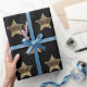 Elegant Black Gold Look Christmas Stars Pattern Wrapping Paper