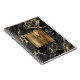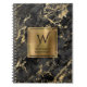 An elegant notebook featuring a background image of black marble with gold veins. Personalise it with your monogram initial in decorative font and your name in copperplate lettering on a brushed gold foil square.