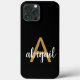 Customised monogrammed simple script name and initial modern and elegant stylish black and girly gold Add Your Name iPhone 13 Pro Max Trendy Case are personalised and perfect for Sweet 16, 13th, 21st, 30th, 40th, 50th, 60th, 70th, Birthday Party, Weddings, Quinceanera, Bridal Shower, Bachelorette Party, Anniversary, or New Driver