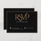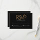 Elegant Black Gold Modern Script Monogram Wedding RSVP Card