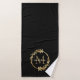 Elegant Black Gold Monogram Eucalyptus Wreath Bath Towel Set