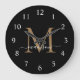 Elegant Black Gold Monogram Feminine Girly Script Name Large Clock