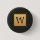 Elegant Black Gold Monogram Initial Script Stylish button. Features a luxury black and gold diamond pattern background.