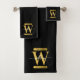 Elegant Black & Gold Monogram Modern Script Bath Towel Set
