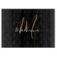 Elegant Black Gold Monogram Modern Script Name Cutting Board