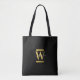 Elegant Black & Gold Monogram Modern Script Tote Bag