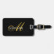 Elegant Black Gold Monogram Script Initial Luggage Tag