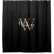 Elegant Black Gold Monogram Script Name Shower Curtain