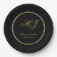 Elegant Black Gold Monogram Script Wedding Paper Plate