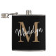 Elegant Black Gold Monogram Stylish Script Name Flask.Easily personalise this modern elegant flask with your custom monogram and name.